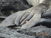 At one point we couldn't see for sure but it appeared Mom had a hold on the kid, and we could see its hind side lift up and flap its rear flippers several times. It was pretty comical as if Mom was making the kid stay put, but it wanted to wiggle away. It was fun watching this little one today.